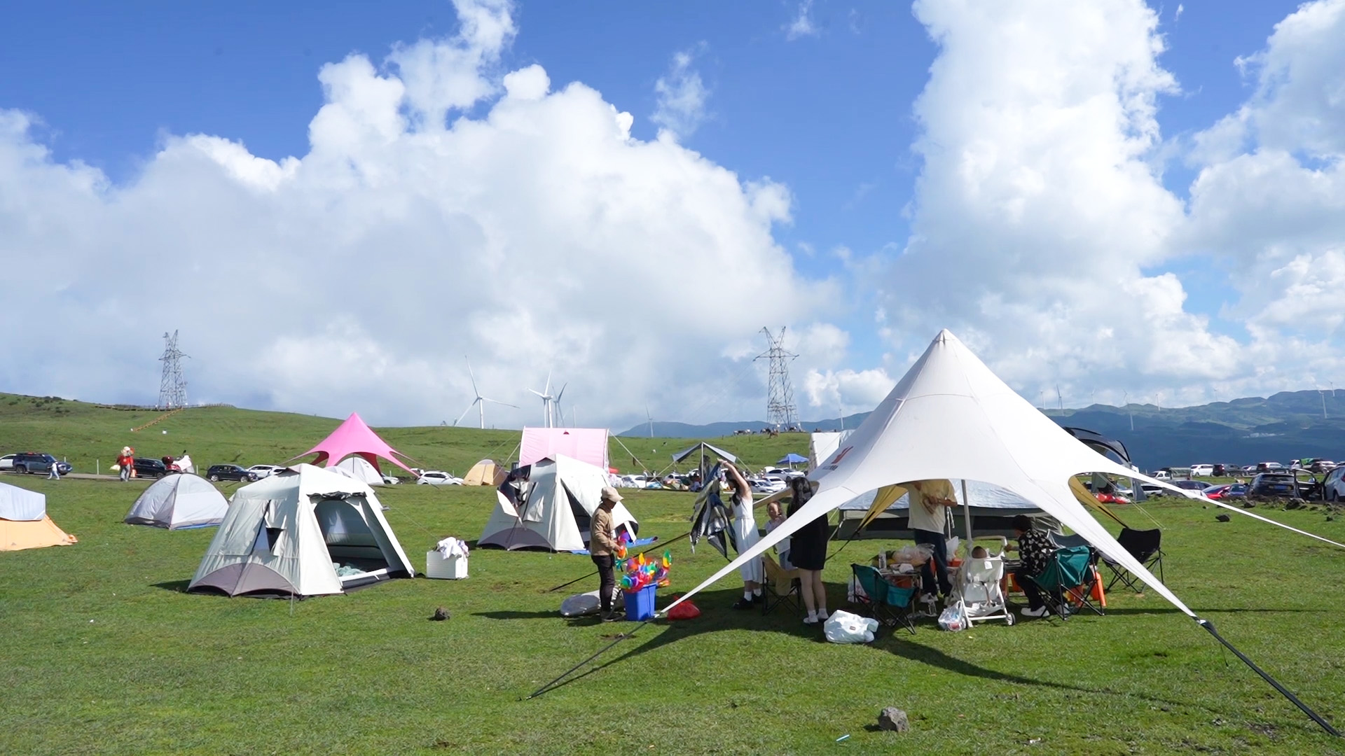 初秋时节,酷暑还未完全退去,乌蒙大草原景区的游客仍然络绎不绝。绿草连绵的草原上,凉风拂面,漫步、骑马、放风筝、露营,感受民族风情,大家惬意地享受草原上的休闲时光。