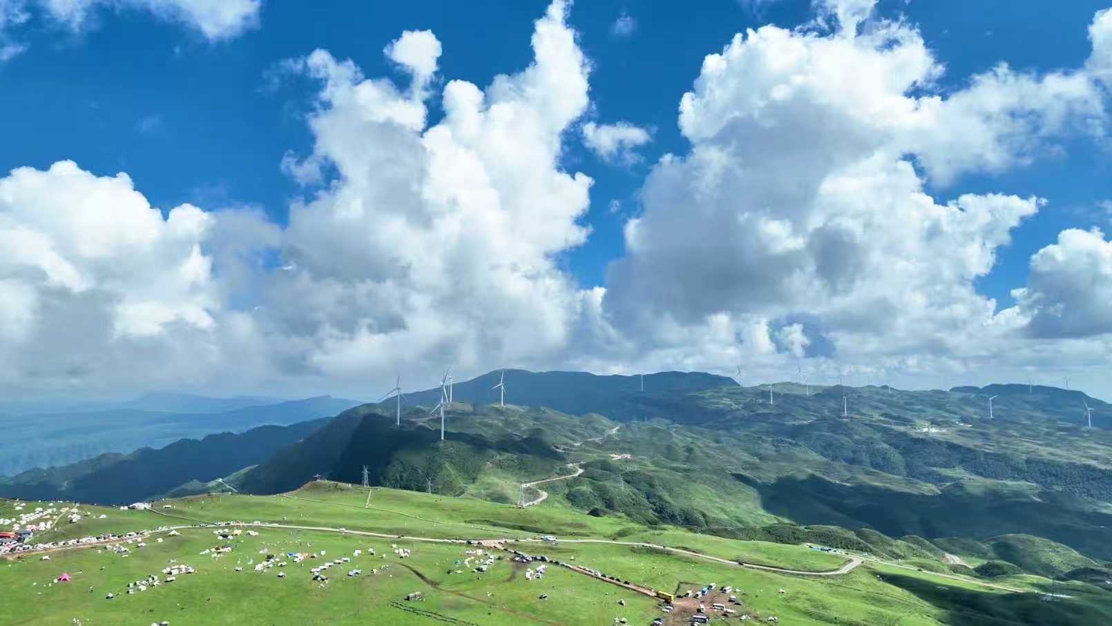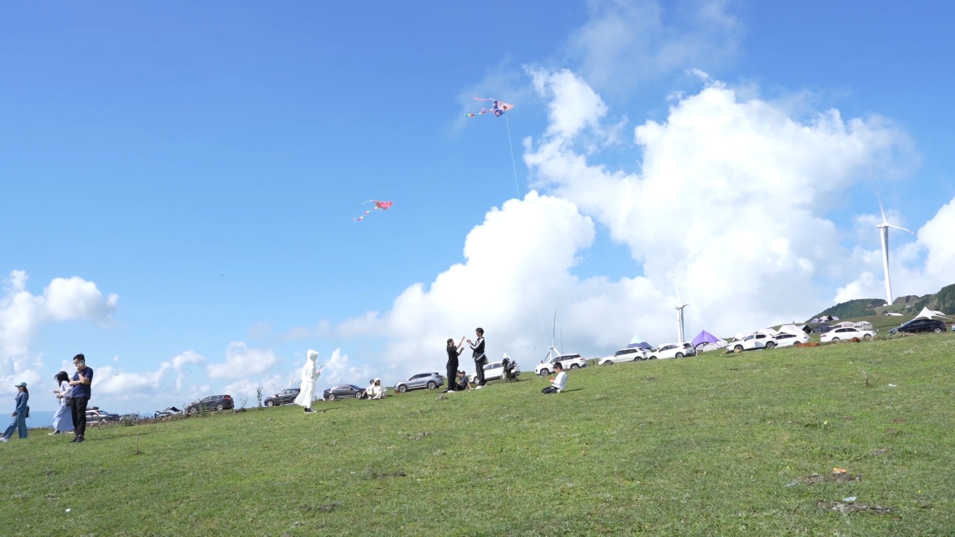 “今天来到乌蒙大草原,看到这里青山绿水,蓝天白云,天空晴朗,云彩特别漂亮,很凉爽,很舒服。”成都游客刘女士说。