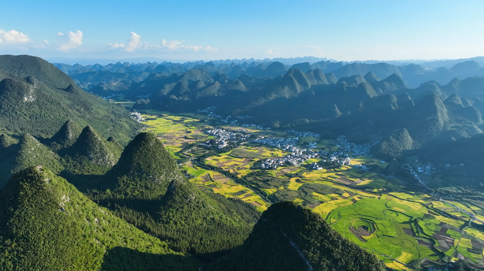 初秋的阳光洒满大地,兴义万峰林沉甸甸的稻穗早已压弯枝头。稻田泛黄,田野铺金,色彩斑斓的丰收画卷正徐徐展开,峰林、村庄和稻田在这里组合成一幅充满视觉冲击的画面,镜头捕捉下的景色更是令人惊叹。风带着泥土和稻谷的芳香拂过鼻尖,山水环抱的农田是自然与人文的完美融合。