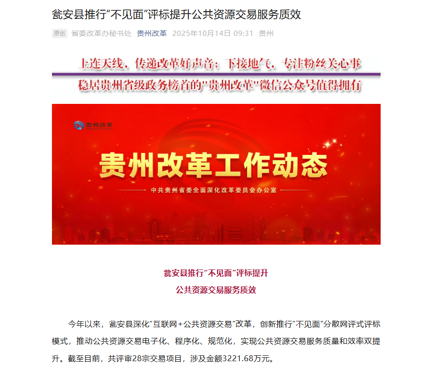 《瓮安县推行“不见面”评标提升公共资源交易服务质效》