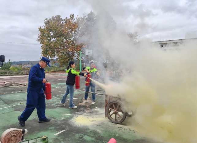 实操体验环节,孩子们认真观看了消防员叔叔是如何使用灭火器的,老师们在消防员指导下认真学习灭火器 “提、拔、握、压” 的使用步骤,轮流上阵进行实操。