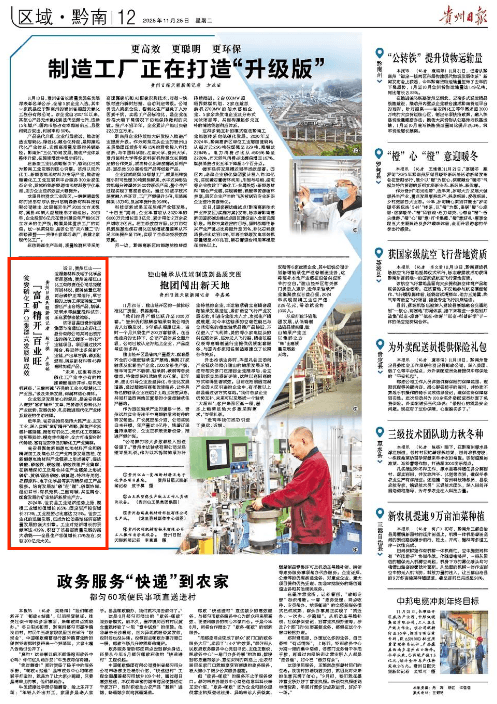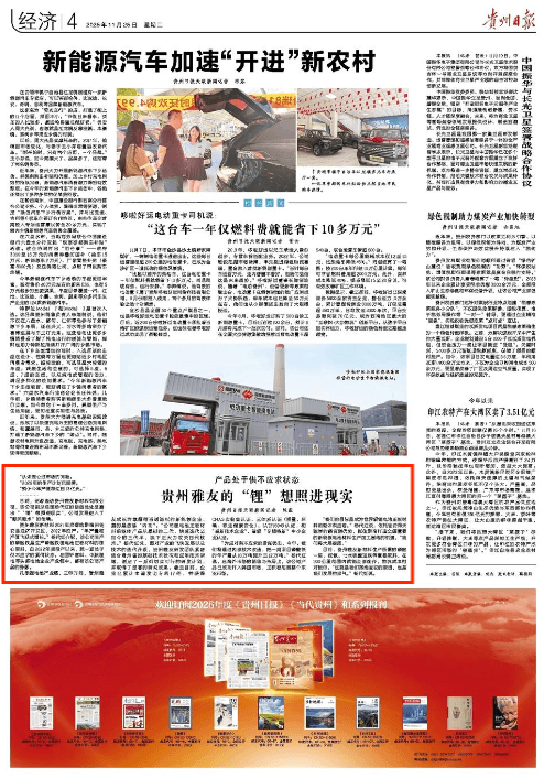 11月25日,贵州日报刊发《“富矿精开”百业旺》和《贵州雅友的“锂”想照进现实》两篇文章,分别对瓮安县境内的贵州江山——瓮福新材料及电子化学品项目基地和贵州雅友新材料有限公司发展现状作了详尽报道。