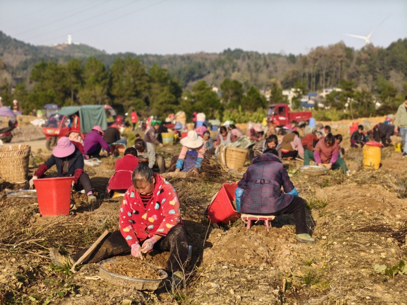 “村里面把闲置土地租给老板种太子参,农闲时我们在家门口就能打工,每天和我一起挖太子参的乡亲就有 100 多人呢!” 村民柏明中一边忙着田间农活,一边笑着说道。一旁的村民吴秀学也接过话茬:“我们在这儿干活,一天能有 100 多元收入贴补家用,比出门务工划算多了,还能照顾老人孩子,心里踏实!” 产业发展带动就业增收,如今村民们既能拿到土地流转租金,又能通过家门口务工赚取劳务费,实现了 “一地双收” 的增收实效。