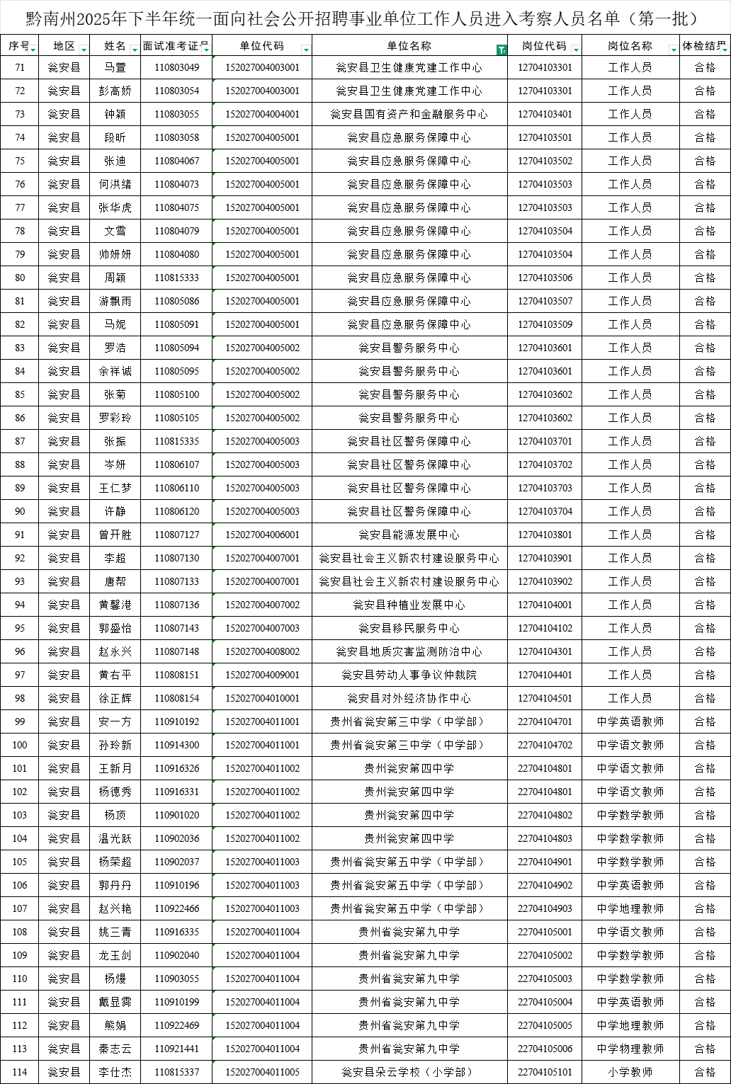 附件:黔南州2025年下半年统一面向社会公开招聘事业单位工作人员进入考察人员名单(第一批)