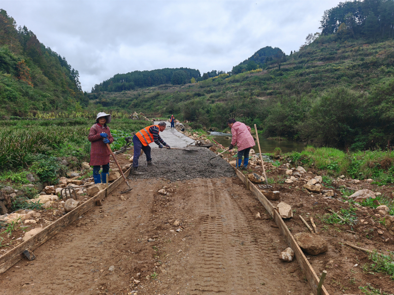 据了解,新土村地处群山环抱之中,交通不便与灌溉薄弱曾是制约发展的 “卡脖子” 难题。今年 8 月 1 日,该村申报的以工代赈项目正式开工,项目聚焦民生短板,同步推进村道硬化与水渠修建。施工期间,山坳间机械轰鸣、人声鼎沸,本地村民与专业施工人员并肩作战,铺石、搅拌水泥、铺设路面、水渠砌墙等工序有序推进。为最大化发挥项目惠民实效,施工方坚持 “能招尽招本地人” 原则,优先吸纳村里有劳动能力、愿意学习的村民参与施工,让大家 “在家门口务工,为自己家乡建设”。“既能挣钱又能学技术,干起活来浑身是劲!” 参与施工的村民笑着说道。