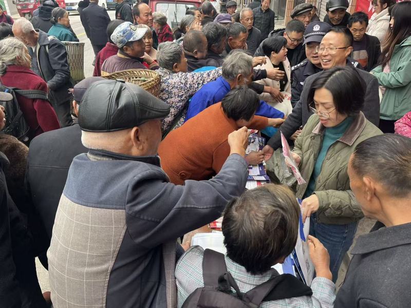 瓮安县公安局银盏派出所的民警们用地道的瓮安方言大声吆喝,一边递资料一边耐心讲解。接地气的喊话一下子就抓住了大家的注意力,不少乡亲主动凑过来问这问那。