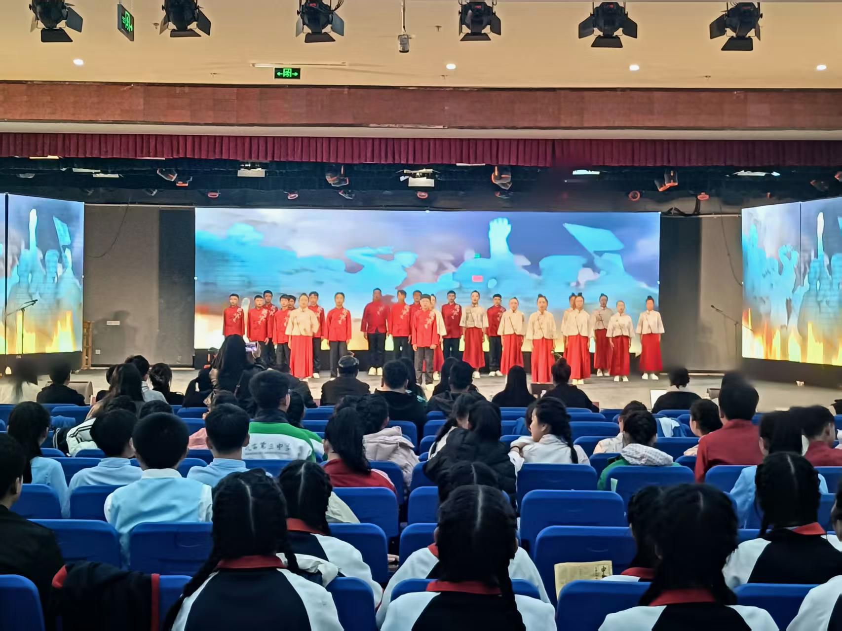 决赛现场气氛热烈,来自瓮安县各中学的选手为全场师生呈现了一场极具感染力的视听盛宴。其中,《铭记一二·九 青春赴国殇》回溯90年前青年学子为民族救亡挺身而出的峥嵘岁月,深深唤起众人对先烈的缅怀之情;《以青春之名,承百年薪火,赴时代之约》立足当下,生动展现新时代青年接力奋斗的坚定决心;《我的青春中国》《青春》则以细腻笔触勾勒青年与祖国的紧密联结,字里行间满是赤诚与热爱;《历史的回响,青春的担当——纪念“一二·九”运动》《山河无恙,吾辈不忘》等其余作品也各有亮点。十个朗诵节目轮番上演,每个节目都引发强烈共鸣,赢得台下师生阵阵掌声。