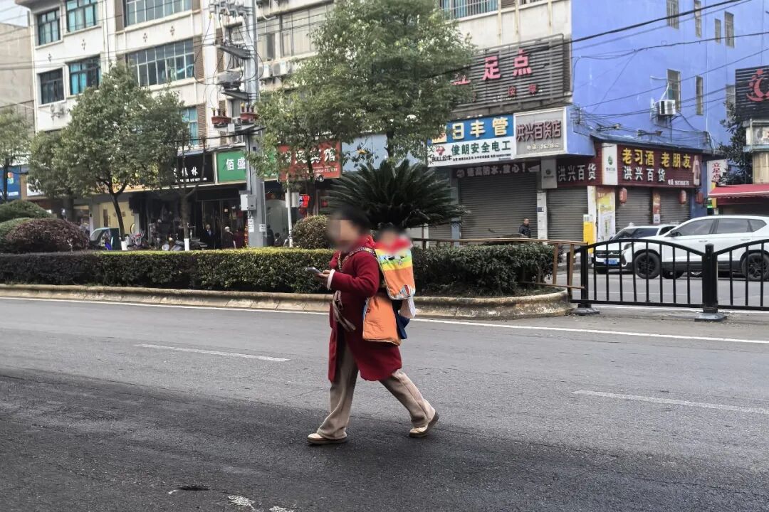发现仍然有行人横穿马路