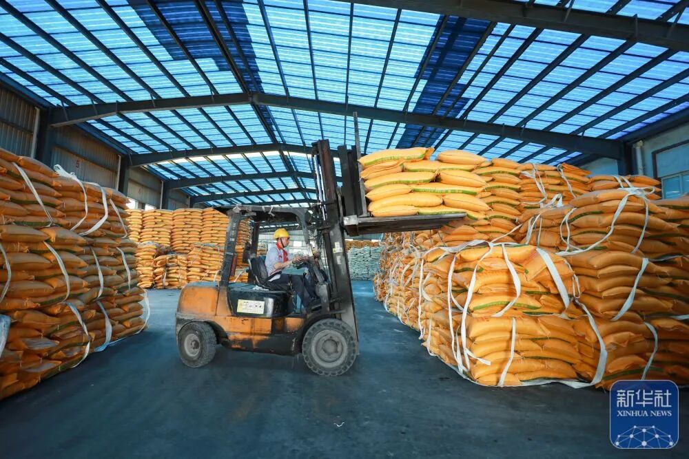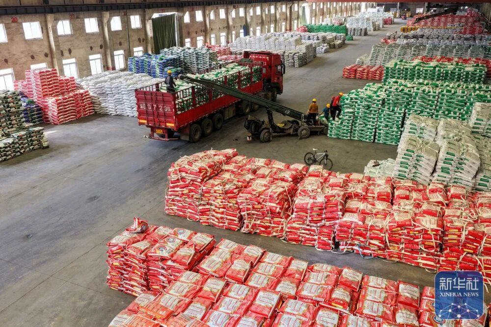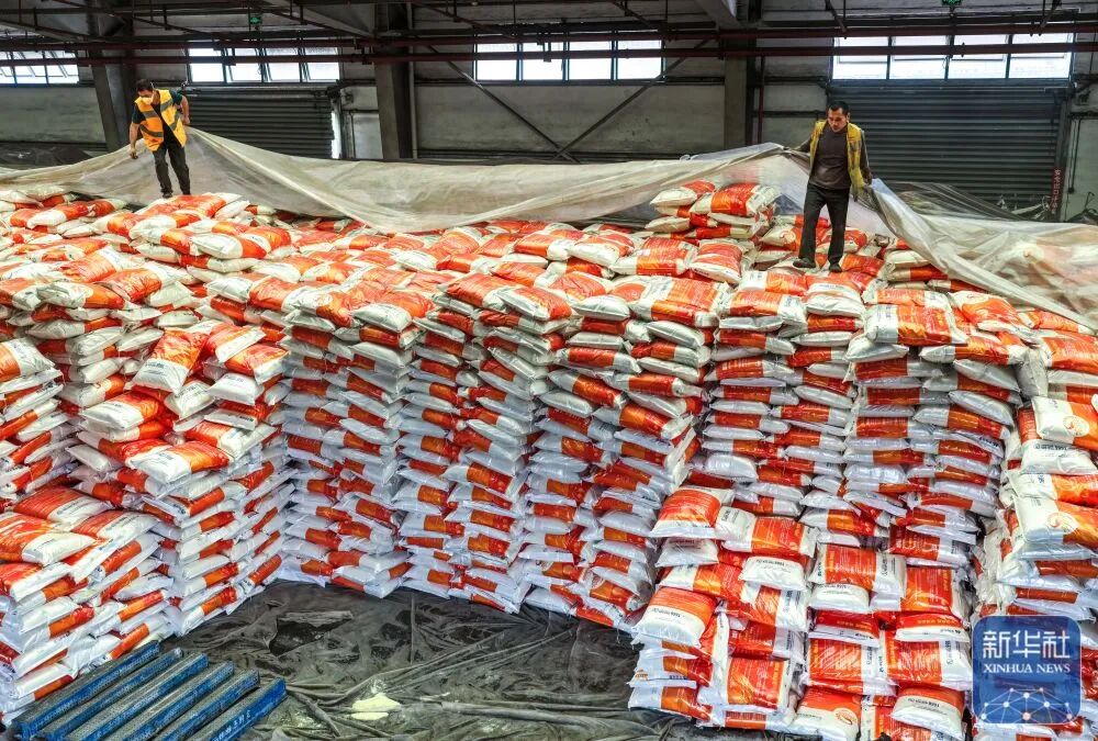 4月16日,工人在贵州省瓮安县一化肥生产企业转运化肥。新华社发(肖伟 摄)